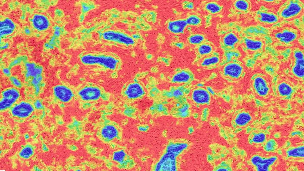 在研究中,研究人员利用机器学习检测了 4,023 个捐赠的健康乳腺组织样本、974 个良性乳腺疾病组织活检样本和 4,223 个浸润性乳腺癌组织活检样本的基质细微变化。